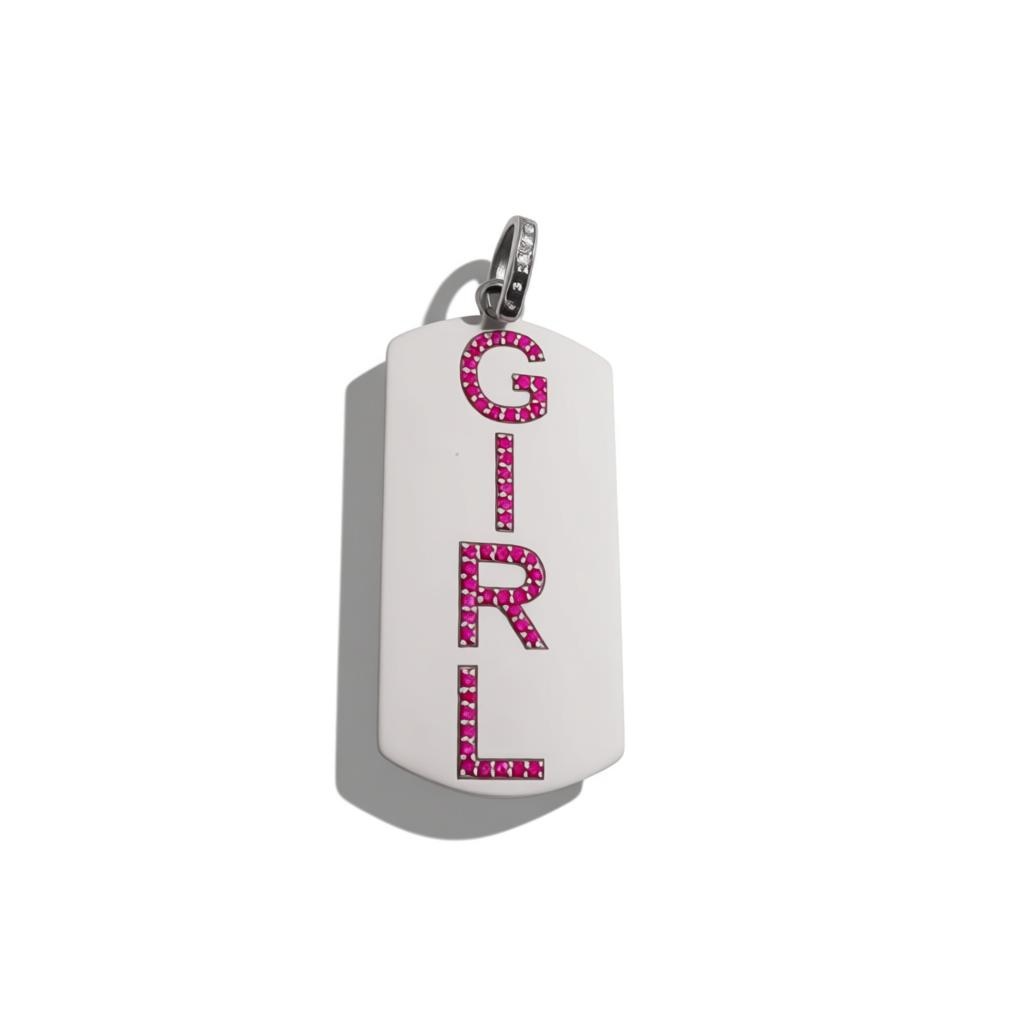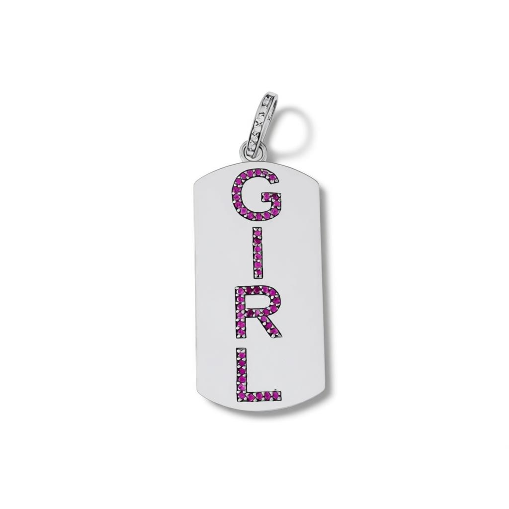 Silver Pet Tag with Diamond Bezel & Pink Sapphires