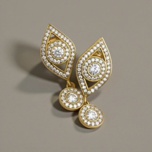 SILVER DIAMOND EVIL EYE EARRINGS