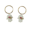 White onyx and ruby earrings with diamonds on a gold hoop…
