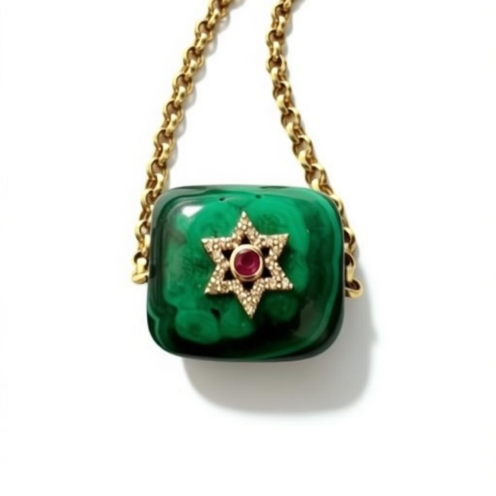 diamond and gold Star of David with a ruby in the middle