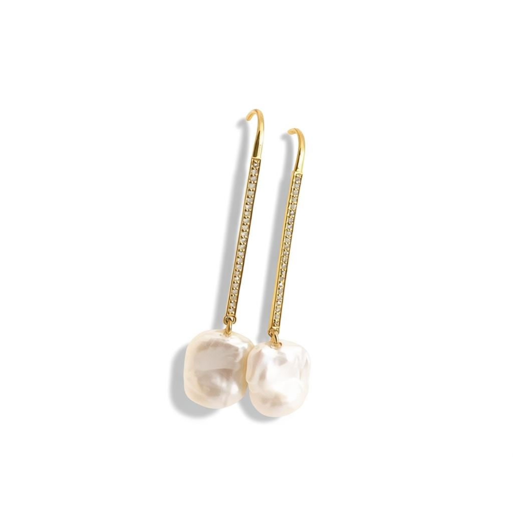SILVER DIAMOND PEARL EARRINGS